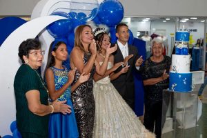 En la plaza central del centro comercial, familiares y amigos de la joven quinceañera aplaudieron su llegada al escenario, donde bailó el vals y vivió inolvidables momentos que atesorará en su corazón.